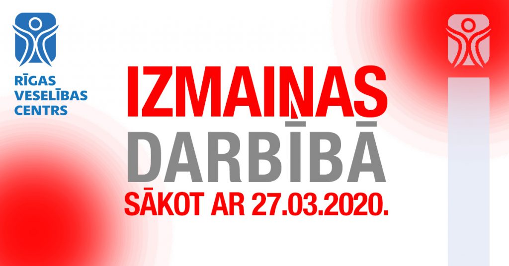 Atsaucoties uz Veselības ministrijas 2020. gada 25. marta rīkojumu “Par veselības aprūpes pakalpojumu sniegšanas ierobežošanu ārkārtējās situācijas laikā”, lai samazinātu Covid-19 infekcijas izplatīšanos, ņemot vērā esošo epidemioloģisko situāciju un iespējamos epidemioloģiskos riskus, no 2020.gada 27. marta SIA “Rīgas veselības centrs” (turpmāk – RVC):