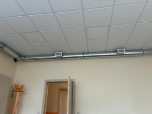 Šobrīd jau ir veikta lielākā daļa sienu caururbšanas darbu, lai izveidotu atvērumus ventilācijas kanālu ierīkošanai. Atsevišķās zonās ventilācijas kanāli jau ir izbūvēti, un telpās sāk iezīmēties vizuālais veidols, kā nākotnē izskatīsies jaunā ventilācijas sistēma, kas tiek integrēta esošajā ēkā. Šis uzdevums ir tehniski sarežģīts, jo ēka sākotnēji tika būvēta bez centralizētas ventilācijas sistēmas.