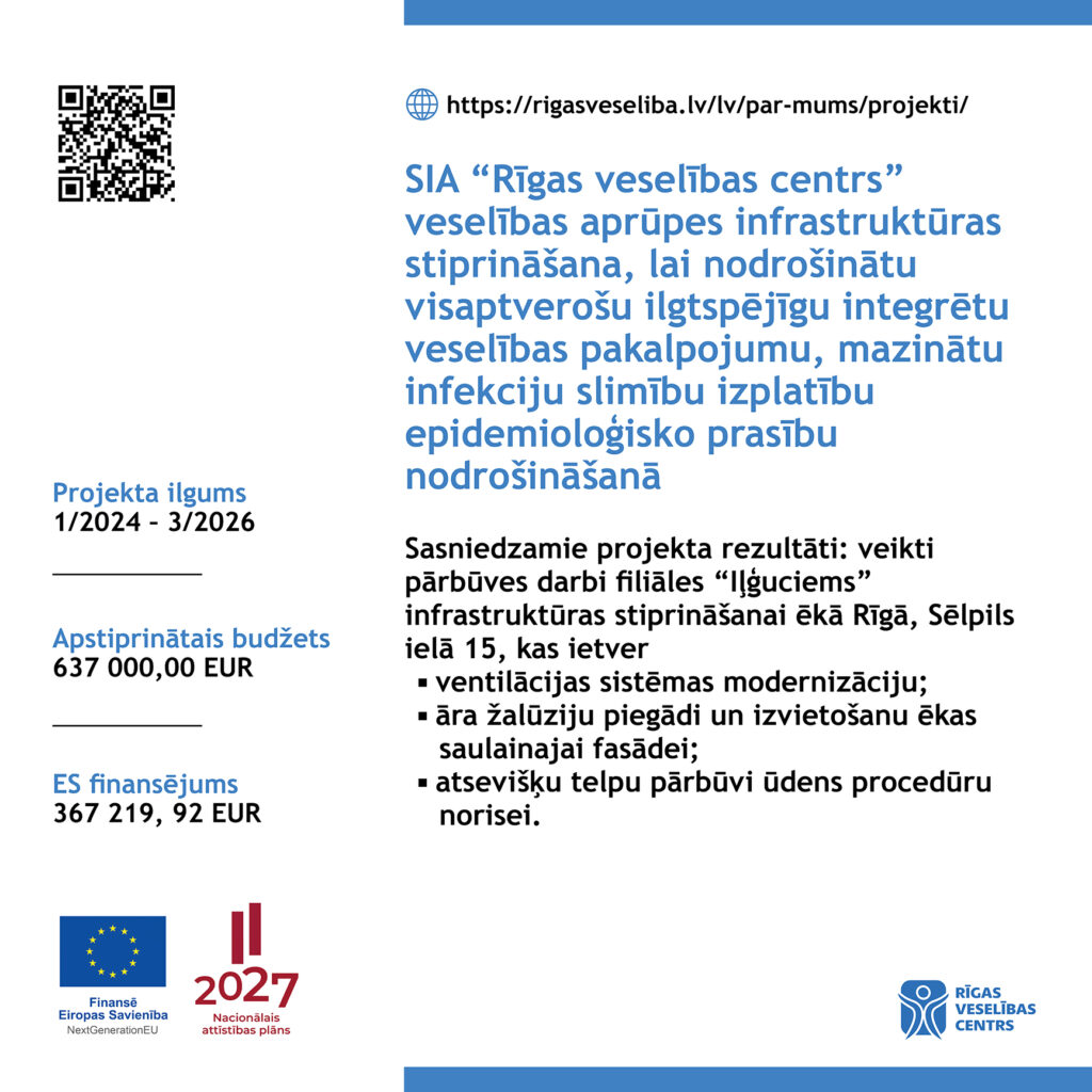 Par Eiropas Savienības Atveseļošanas un noturības mehānisma fonda investīciju projekta Nr. 4.1.1.3.i.0/1/23/I/CFLA/015 “SIA “Rīgas veselības centrs” veselības aprūpes infrastruktūras stiprināšana, lai nodrošinātu visaptverošu ilgtspējīgu integrētu veselības pakalpojumu, mazinātu infekciju slimību izplatību epidemioloģisko prasību nodrošināšanā” īstenošanas progresu