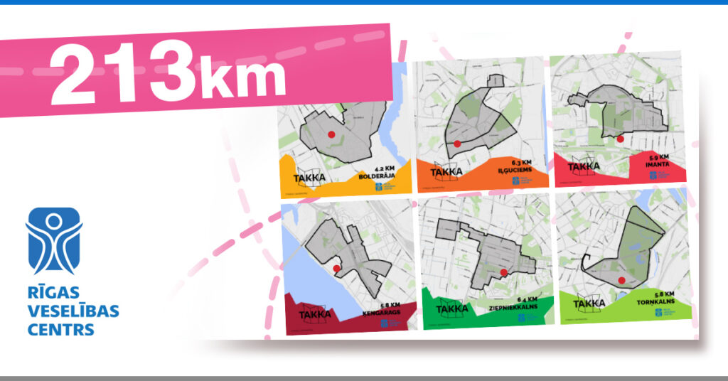 Noslēgusies veselīga dzīvesveida akcija, kurā aicinājām būt aktīviem, izkustēties svaigā gaisā un doties pārgājienā kādā no “Rīgas veselības centra” filiāļu apkārtnēm, izstaigājot dažādas figūras! Kopā ar uzņēmumu TAKKA esam izstrādājuši 4-6 km maršrutus, kas ved garām mūsu filiālēm Bolderājā, Iļģuciemā, Imantā, Ķengaragā, Torņakalnā un Ziepniekkalnā.