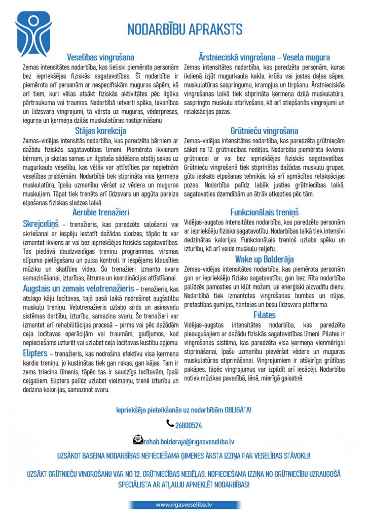 Nodarbību saraksts no š.g. 1. septembra Rehabilitācijas un rekreācijas nodaļā: