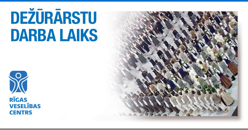 SIA “Rīgas veselības centrs” dežūrārsti XIII Latvijas Skolu jaunatnes dziesmu un deju svētku laikā nodrošinās ambulatorās pieņemšanas (izņemot filiāles “Bolderāja” un “Torņakalns”):